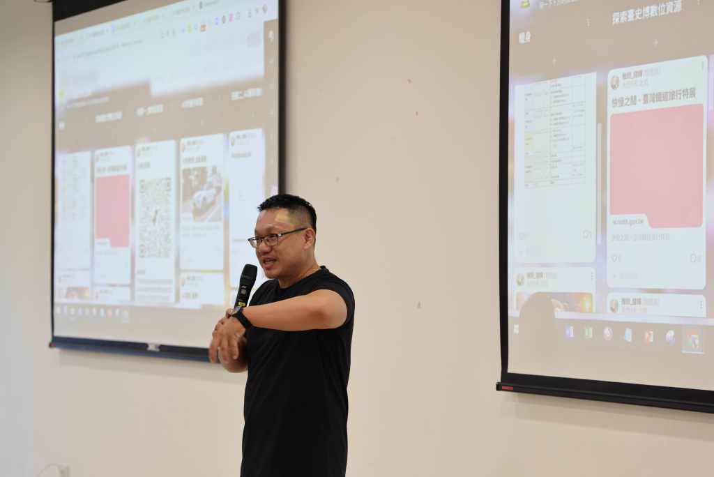第一堂課由臺史博數創中心代表林芳群主講,首先綜覽介紹臺史博線上資源的分類及用途,也針對各個不同主題網站操作示範。講師也建議學員,可以先了解要如何進入臺史博網站的「數位臺史博」專區,課程結束後再搭配「數位資源通用手冊」,尋找自己需要的網站。