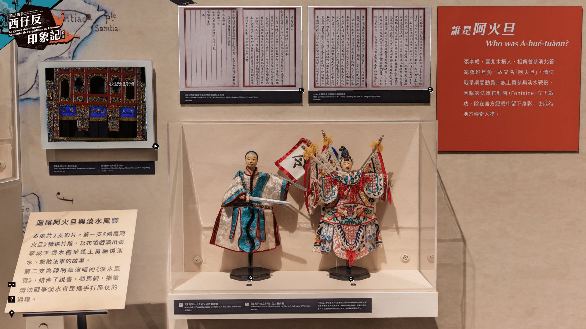 在展覽裡,有圖文與展品,也有聲音與地圖的互動裝置,讓人能身歷其境的知道臺灣人與法軍們,是怎麼看待這場交戰。
